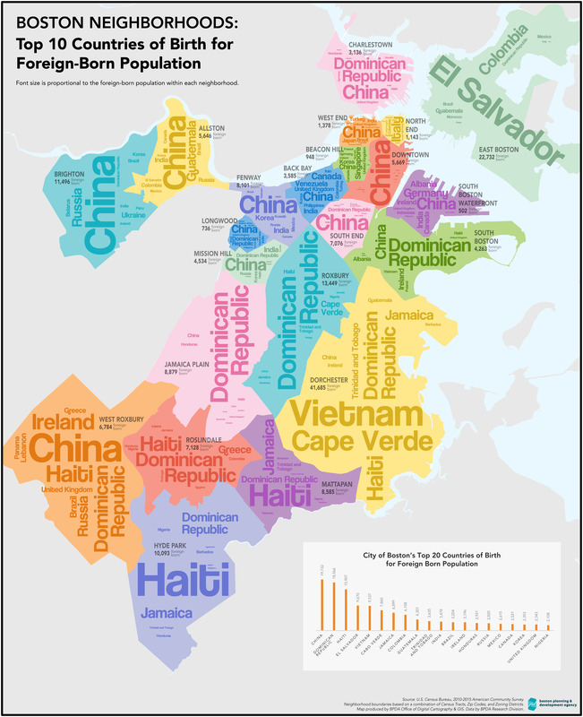 Earlier this week Adam who publishes the excellent blog, UniversalHub, shared this map from the Norman B. Leventhal Map Center at the Boston Public Library. I found this particularly interesting, because although I was only born a few miles from Boston in the tiny town of Winchester, MA, Sergio was born about 4,500 miles to the south in Brazil. You can get a better look at the map and zoom in to see some of the smaller printed nationalities if you click here.