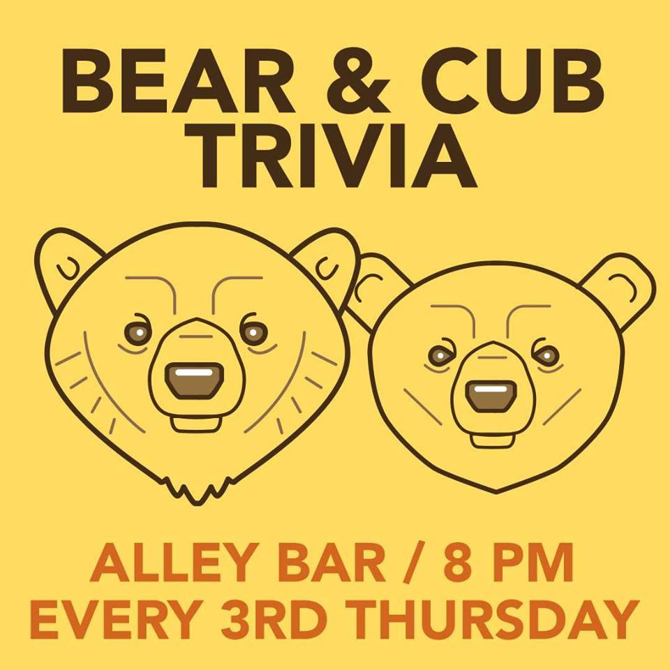 Bear Trivia Night is the third Thursday of every month and starts at 8PM at The Alley Bar in DTX Boston