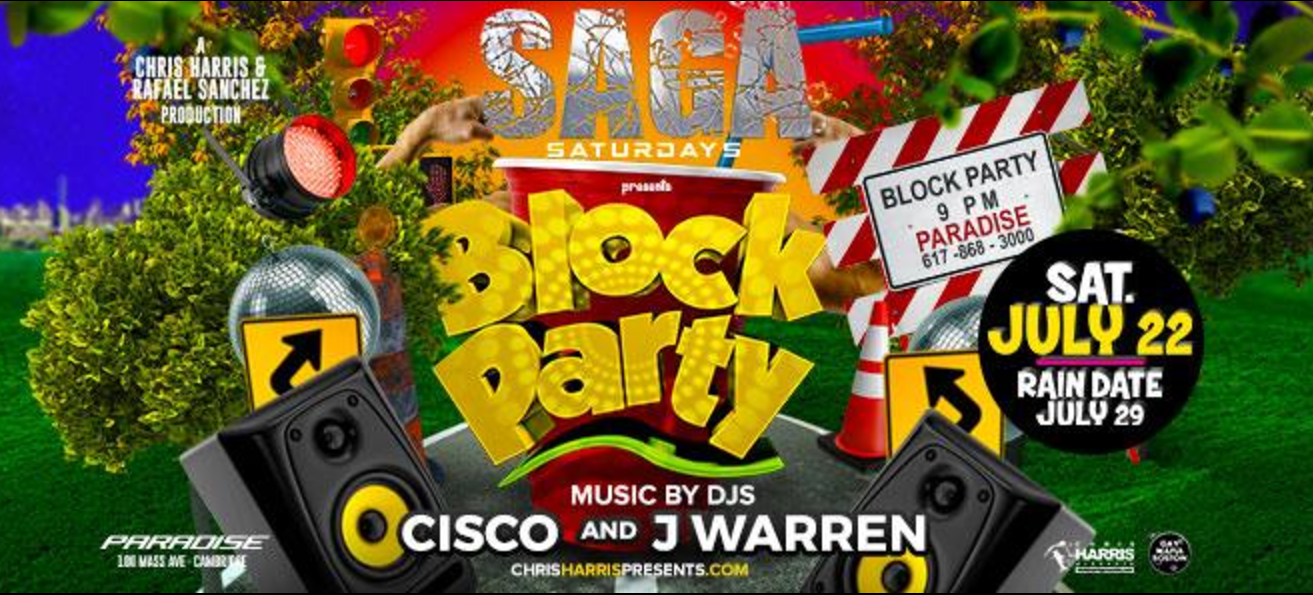 Saga Block Party takes Boston’s biggest gay dance party at Paradise and moves it outside from 9PM – 2AM in Cambridge