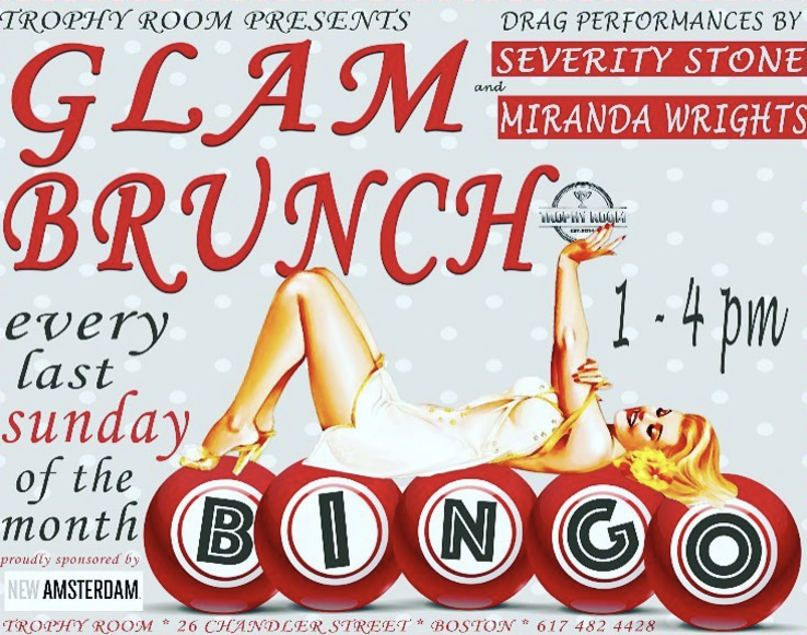 Drag Glam Brunch is the last Sunday of every month from 1-4PM at the Trophy Room in Boston