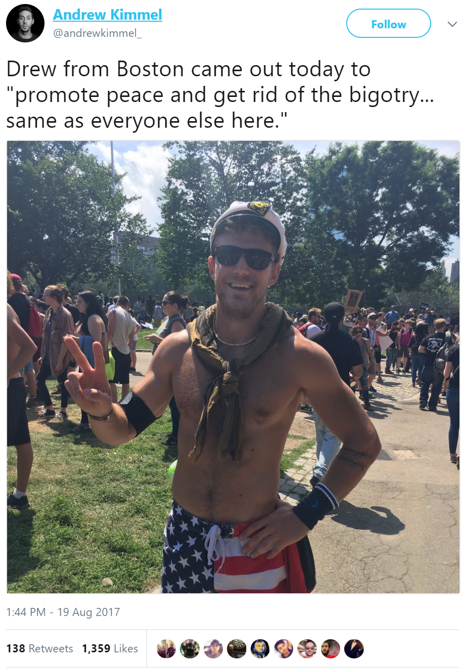 The “Free Speech Rally” hosted this past Saturday in Boston could barely muster a couple dozen Libertarians and White Supremacists to the Boston Common. This despicable group who wrapped themselves in our country’s Bill of Rights for the purpose of antagonizing and getting free media were dwarfed by an impressive counter demonstration that police estimate ranged from 30,000 – 40,000 people.