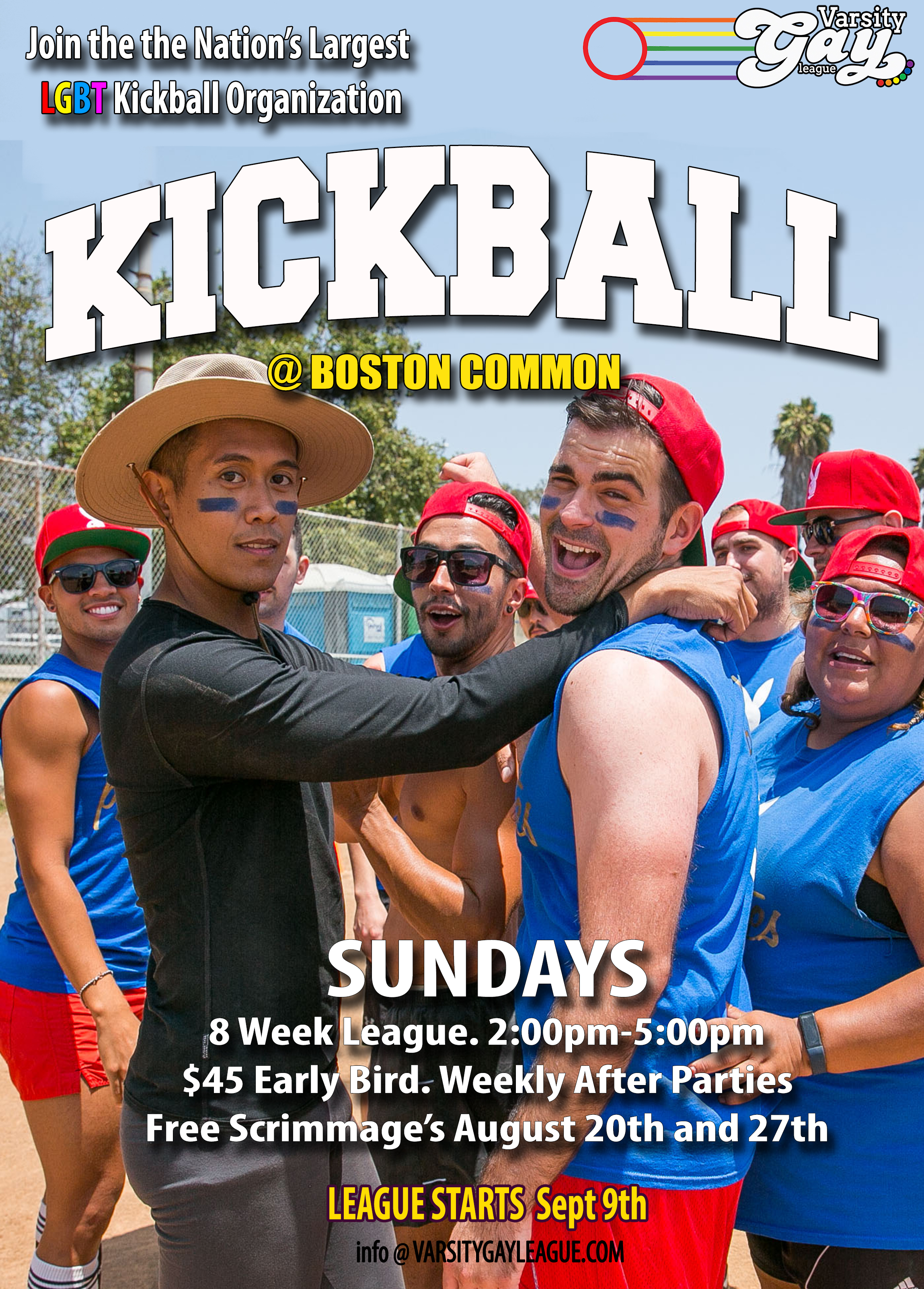 Above is a promo for The Varsity Gay League (VGL) which is a Los Angeles-based gay sports league that operates in California, Texas, Florida, Oregon and Colorado. VGL kickball season starts on September 9th. They will also be hosting free scrimmages August 20th, 27th .