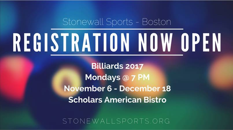 Stonewall Sports – Boston recently started a new billiards league. While registrations may have already closed at the time of this post, it is worth reaching out to the organizers.