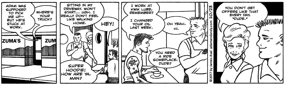 ADAM & ANDY is set in the fictional New England town of Woodfield, CT. You can learn more about this strip by visiting, adamandandy.com.