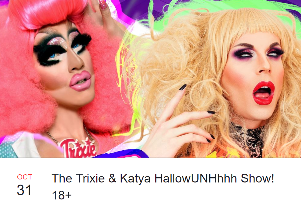 The Trixie & Katya HallowUNHhhh Show! is an 18+ event starting at 7PM on Tuesday (Halloween) at Royale in Boston