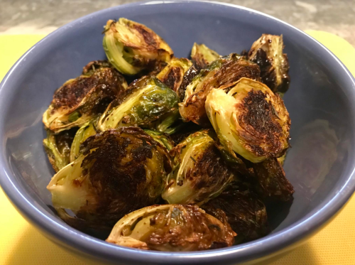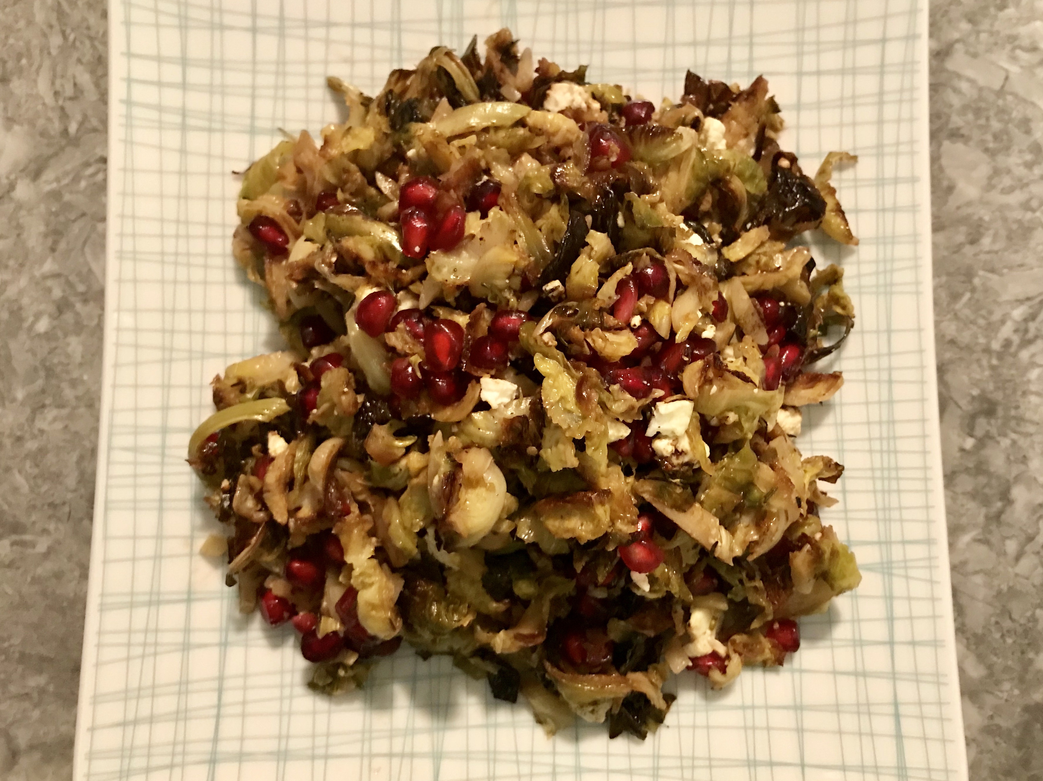 I really like Brussels sprouts when they’ve been roasted to the point of being crispy on the outside, but lately I’ve been shredding the roasted veggie and turning it into a salad. It never fails to please and I like how versatile the salad is.