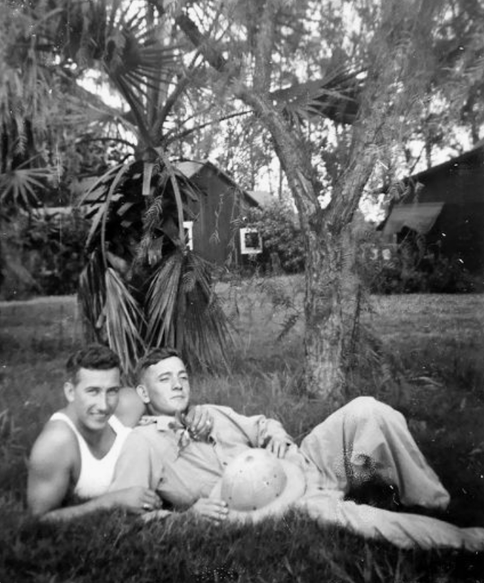 No idea when or where this photo was taken but I love the safari hat (is that what it is called) in the guys hand and it makes me wonder where these two guys were canoodling (and when). Any guesses?