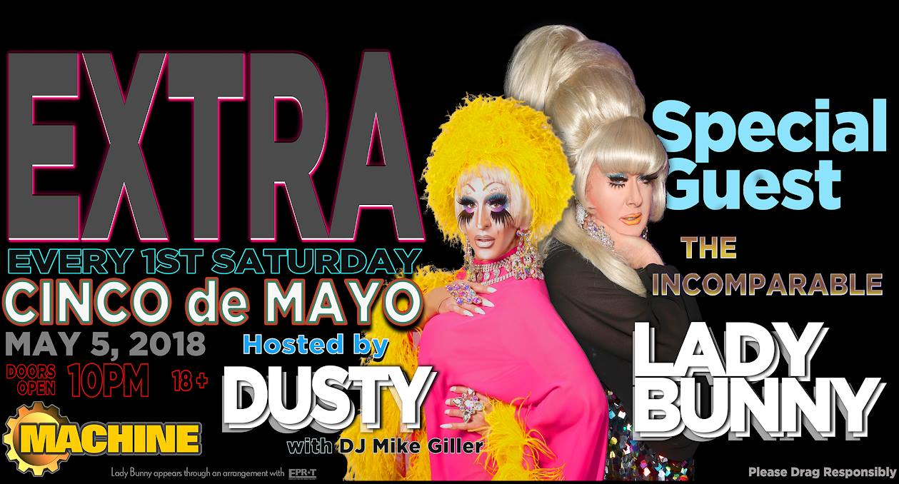 EXTRA with Special Guest Lady Bunny is an 18+ party at Machine on Saturday starting at 10PM in Boston