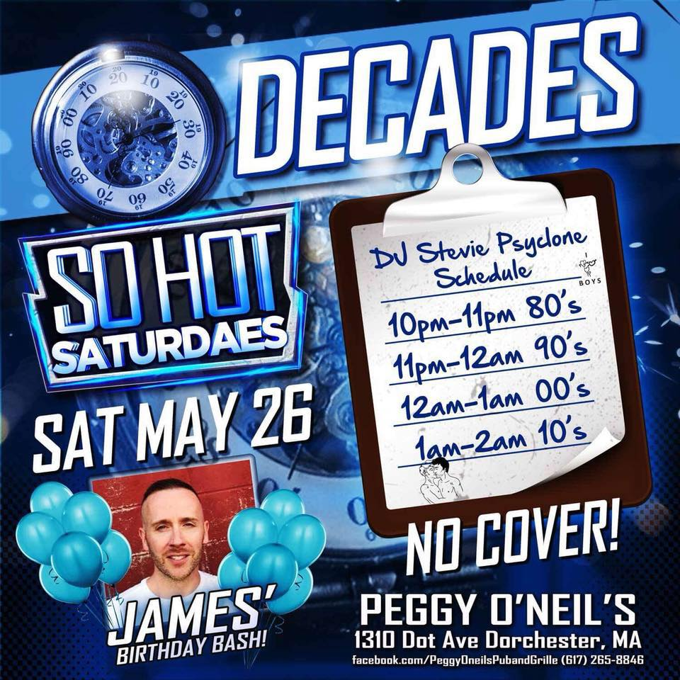 So Hot Saturdaes Decades Party returns this Saturday at Peggy O’Neil’s starting at 10PM in Dorchester