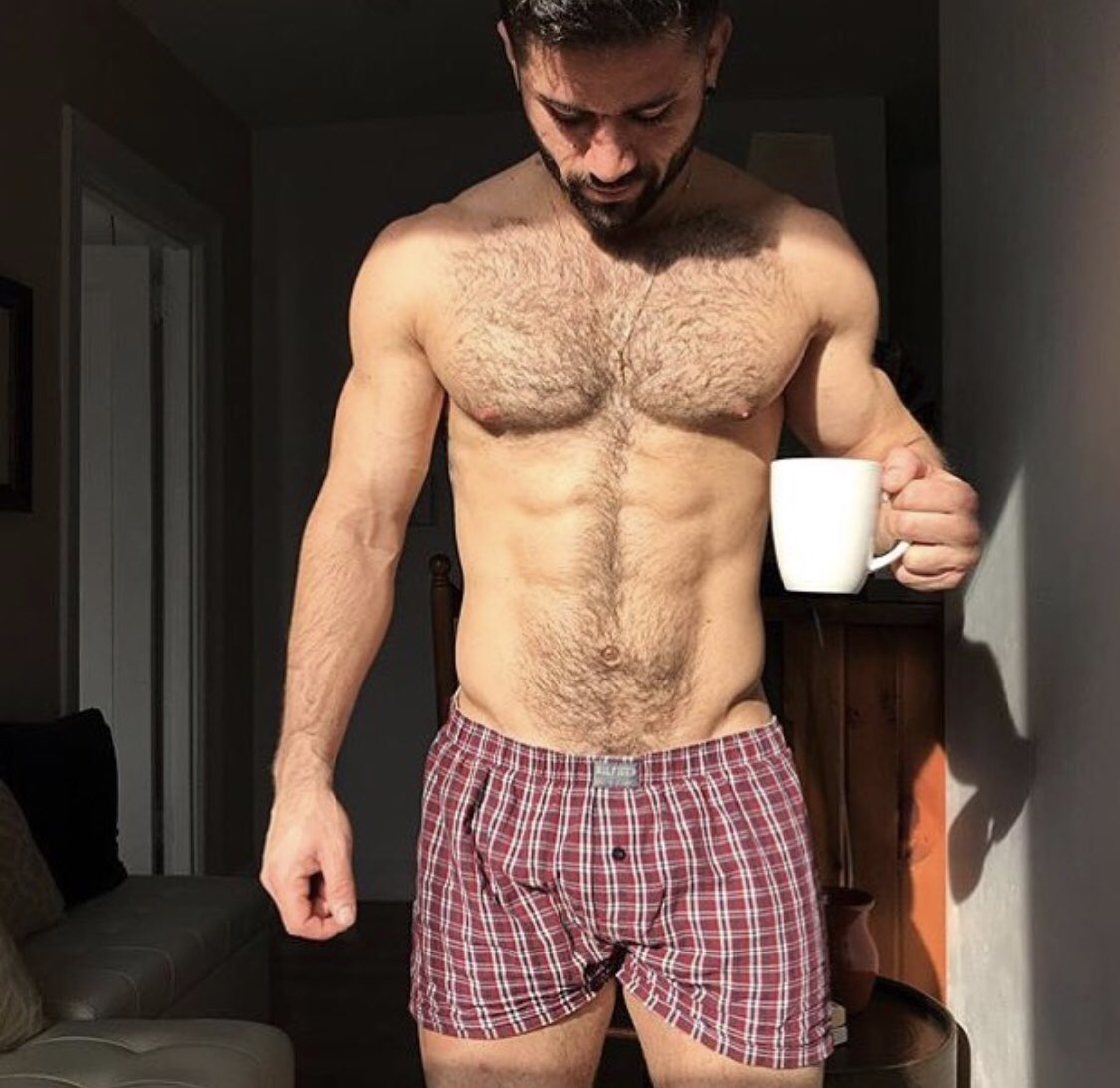 Coffee + Handsome guy in boxers = How I want to wake up in the morning.