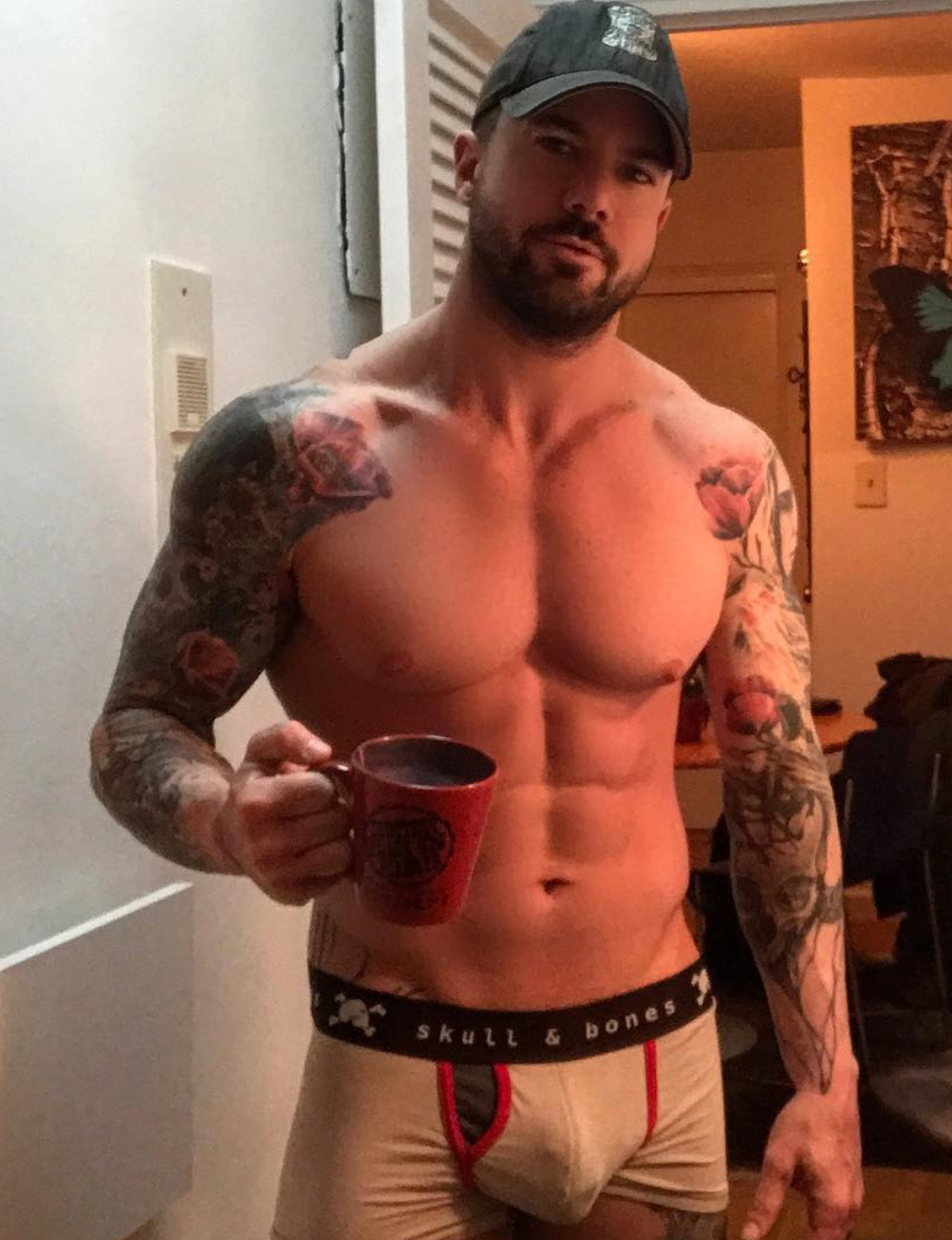 This week’s Saturday morning coffee is inspired by this photo of Massachusetts native, Joe Putignano, who now lives in NYC where he tends bar, is a personal trainer and more. His contortions and sexy photos (like this one) make for an interesting Instagram account to follow.