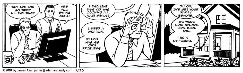 ADAM & ANDY is set in the fictional New England town of Woodfield, CT. You can learn more about this strip by visiting, adamandandy.com.