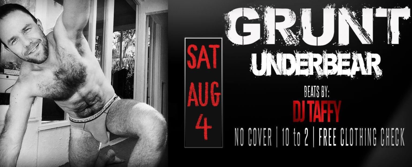 Grunt/Underbear is a weekly dance party with no cover for burly men and their admirers, starting at 10PM at the Alley Bar in DTX