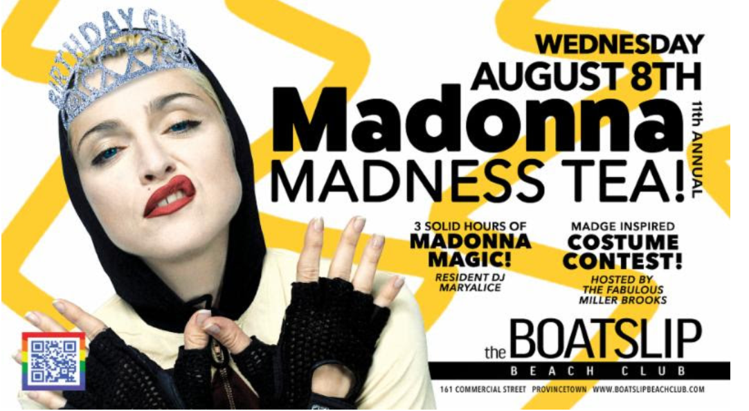 MADONNA Madness Tea Dance is on Wednesday at the Boatslip from 4-7PM in Provincetown