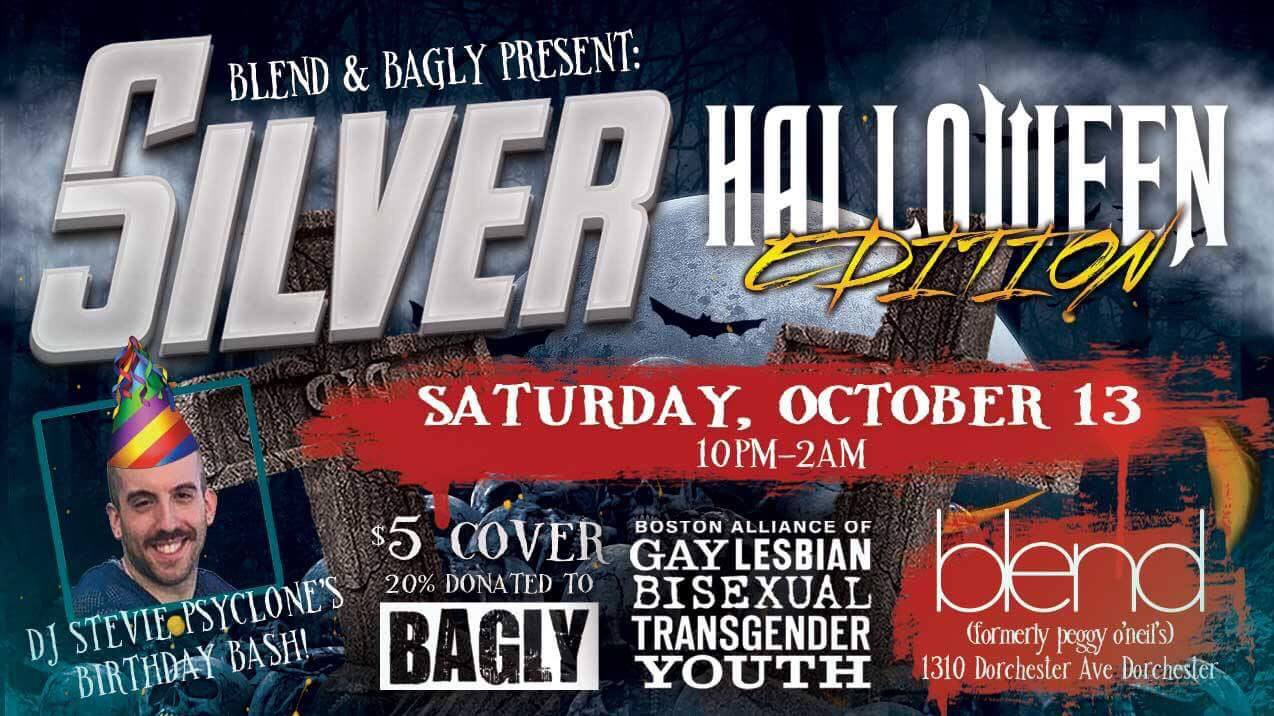 Silver at BLEND takes place the second Saturday of every month – this is a dance party for mature audiences and the men who like them – doors open at 10PM at Blend (formerly Peggy’s) in Dorchester
