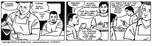 ADAM & ANDY is set in the fictional New England town of Woodfield, CT. You can learn more about Adam and Andy and purchase a copy of “the definitive collection of Adam and Andy” by visiting, adamandandy.com.