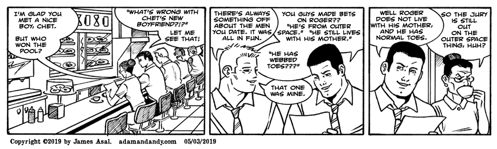 ADAM & ANDY is set in the fictional New England town of Woodfield, CT. You can learn more about Adam and Andy and purchase a copy of “the definitive collection of Adam and Andy” by visiting, adamandandy.com.