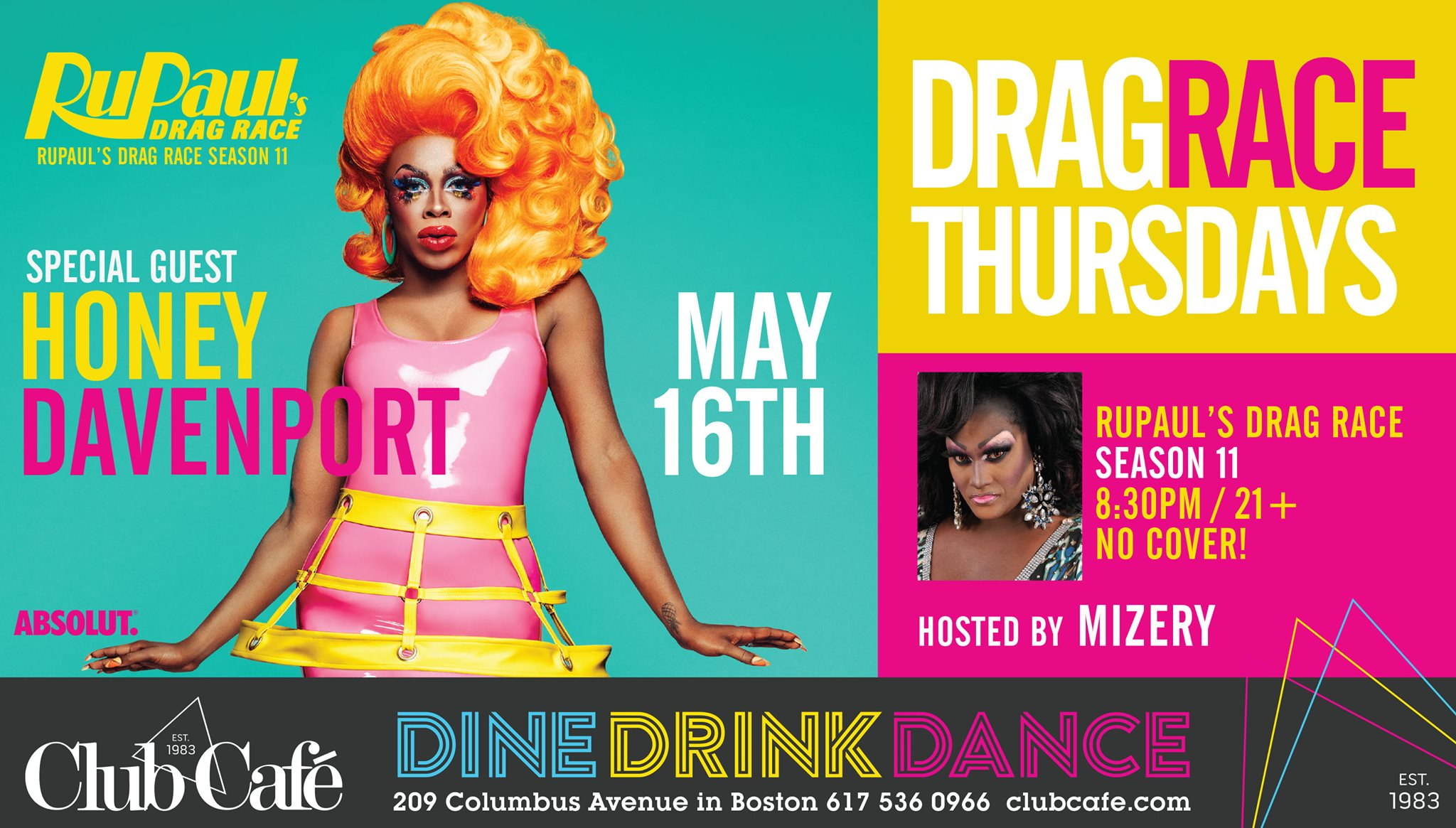 Drag Race Thursday with Special Guest Honey Davenport is at Club Cafe; all the fun starts at 8PM