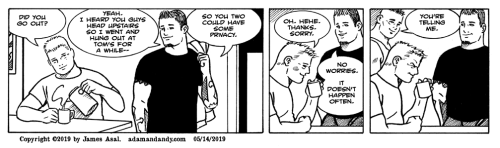 ADAM & ANDY is set in the fictional New England town of Woodfield, CT. You can learn more about Adam and Andy and purchase a copy of “the definitive collection of Adam and Andy” by visiting, adamandandy.com.