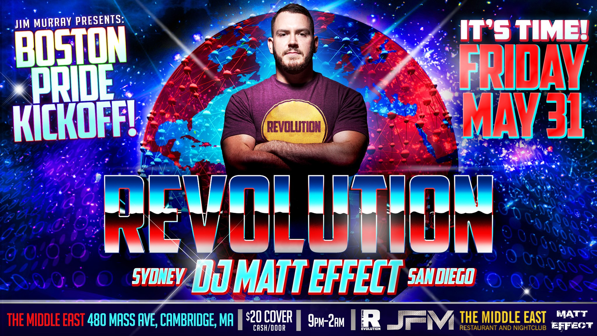 Revolution: It’s Time hosted by Jim Murray Events is downstairs at the Middle East in Central Square – check out this new monthly gay dance night – doors open at 9PM on Friday