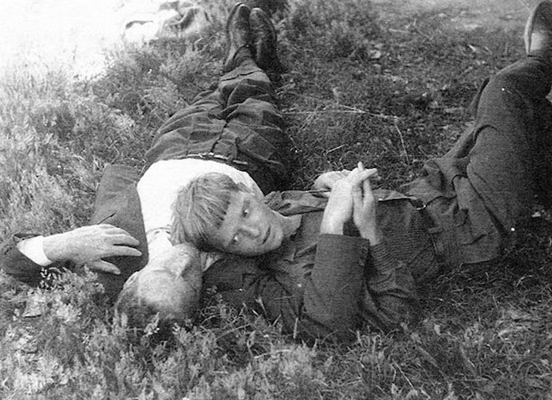 Here is a photograph of a young Truman Capote resting his head on his lover and partner, Jack Dunphy. My guess would be that this dates back to the late 40s or possibly in the early 1950s. Anyone know more about this picture?