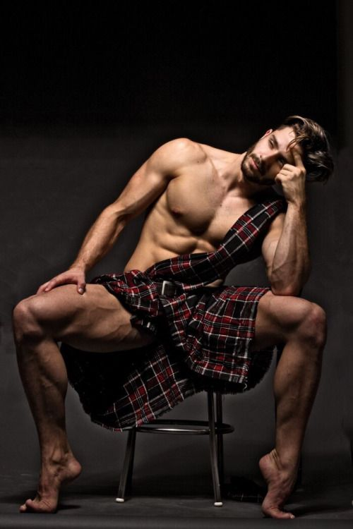 shirtless hunk wearing a kiltI’m not sure if this is a kilt or not – it’s kind of impossible to tell what the heck he is wearing but it sure is fun to look at.