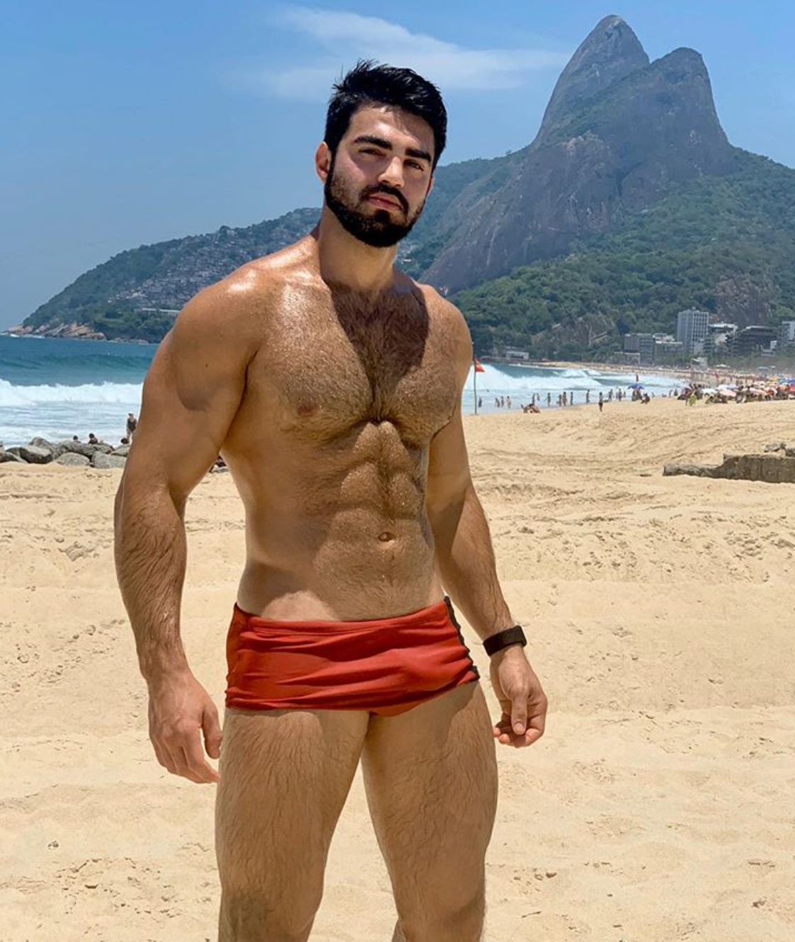 handsome, hairy man on the beach in Ipanema, BrazilJefferson Ferreira is a Brazilian-born, New-York based fitness model who has more than 1 million followers on Instagram. He became quite popular – especially in Brazil, after posting pictures like the ones shown here.