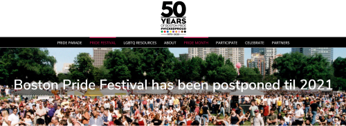 Earlier today Boston Pride announced that the 50th annual Boston Pride celebration will be postponed to Saturday, June 12, 2021. For those of you who already registered for the 2020 Festival, Boston Pride organizers have shared the following options listed below.