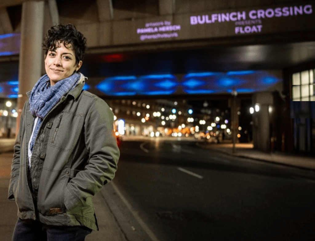 You may not know Pamela, a Boston-based artist originally from mexico but you’ve probably heard of some of her work. She is the creative force behind some recent public art displays in the city like the lighting of the Hatch Shell on the Esplanade and “FLOAT”, another projection mapping art display at Bulfinch Crossing that has been up since late last year and wraps up in the spring (more about that, here).