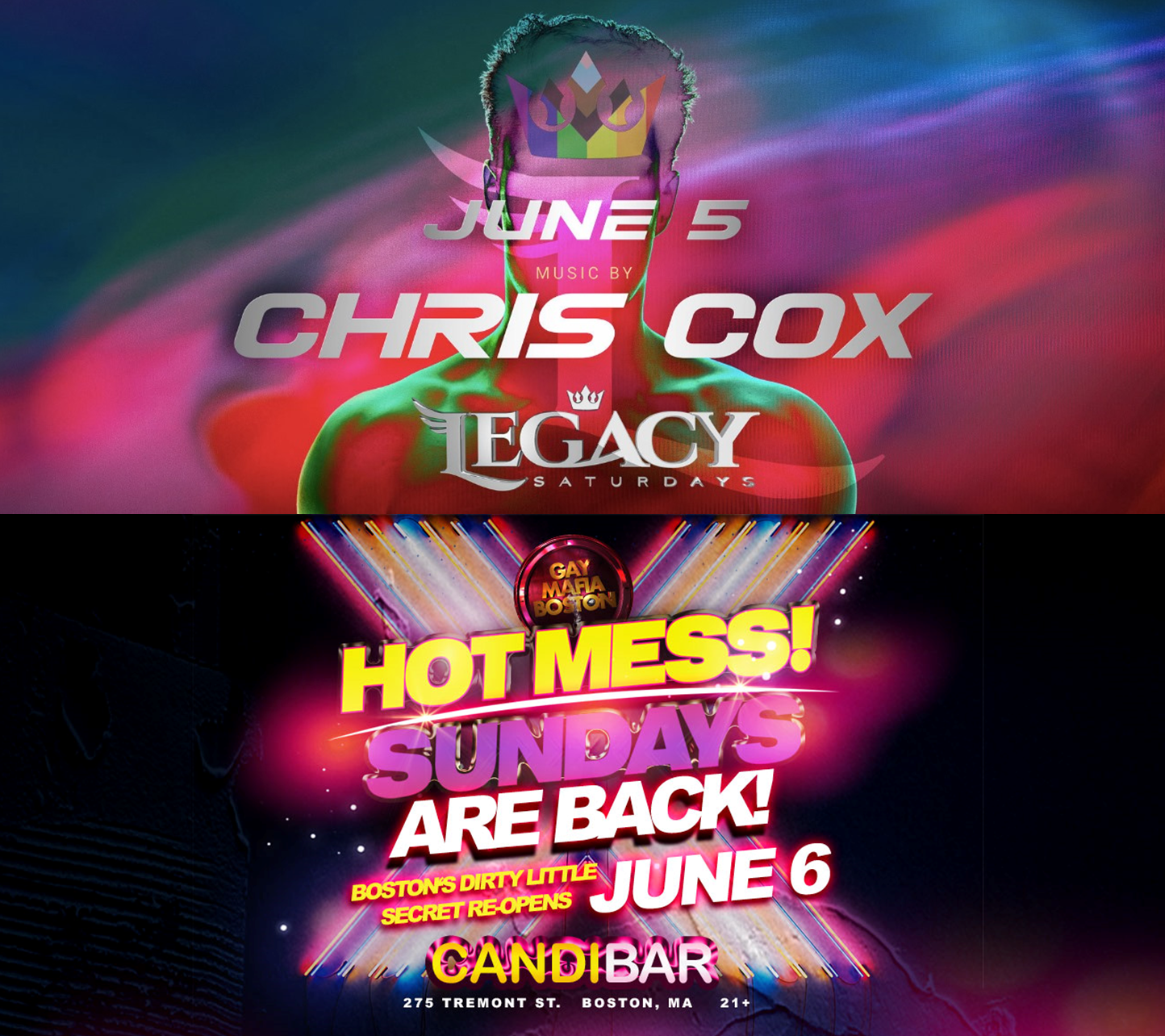 Boston’s Gay Mafia returns this weekend with DJ Chris Cox spinning at Legacy on Saturday and HOT MESS! Sundays at Candi Bar. Click the links for more information and to get tickets.