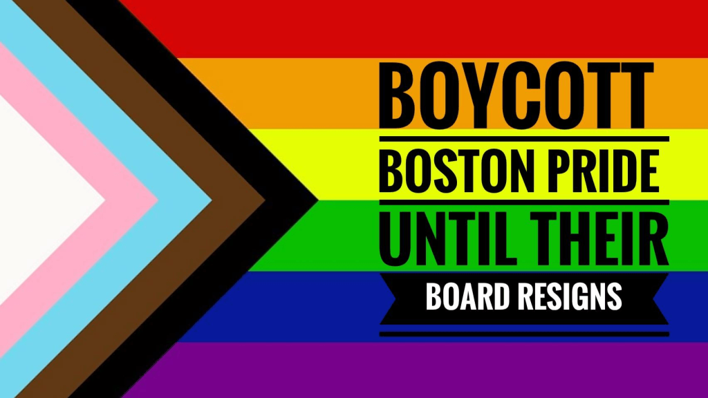 SATURDAY: Boycott Boston Pride Meet Up A growing list LGBTQ+ groups are calling for a boycott of Boston Pride 2021. Learn more about why and what is happening on Saturday at 10:30AM in Nubian Square and march to Franklin Park where a vigil for black trans lives will take place at the Park Playstead / Trails on Pierpont Road in Jamaica Plain.