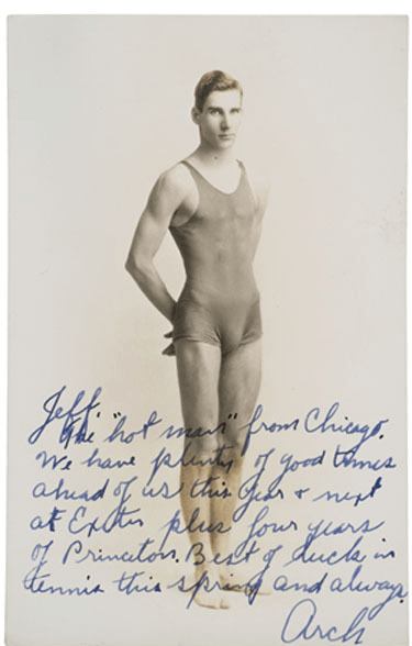 This week’s vintage gay post comes from The Vintage Life blog. I normally post photos of couples or groups but this week’s photo has such an endearing letter I thought I’d share. It reads, Jeff, The ‘hot man’ from Chicago. We have plenty of good times ahead of us this year + next at Exeter plus four years of Princeton. Best of luck in tennis this spring and always. Arch. I’d love to know more about this mystery couple who attended some of the most elite schools in America.