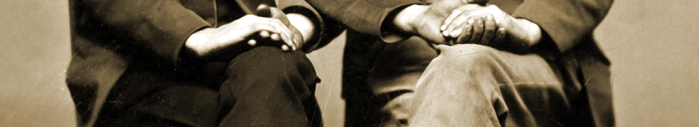 I love this photograph which suggests it dates back to the late 19th / early 20th century. Their synchonized pose with left legs crossed, hands in each others and pipes, cigarettes (or whatever that is) justting off to their left is picture perfect.