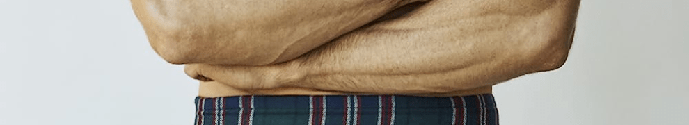 London actor, Neil Ellice, is looking good in a kilt and little else.