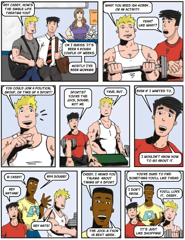 CASEY AT THE BAT is a comic strip follows the adventures of a young, gay man [Casey] and his friends in life, love and sports! You can learn more about Casey by visiting, caseyatb.com.