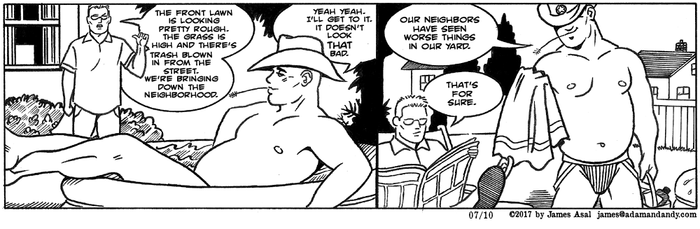 I’m changing up my weekly gay comics post, combining both Adam and Andy & Casey At The Bat. I hope this makes it easier for you to read and share with your friends. Both artists are very creative and have back issues available on their respective websites. Check them out.