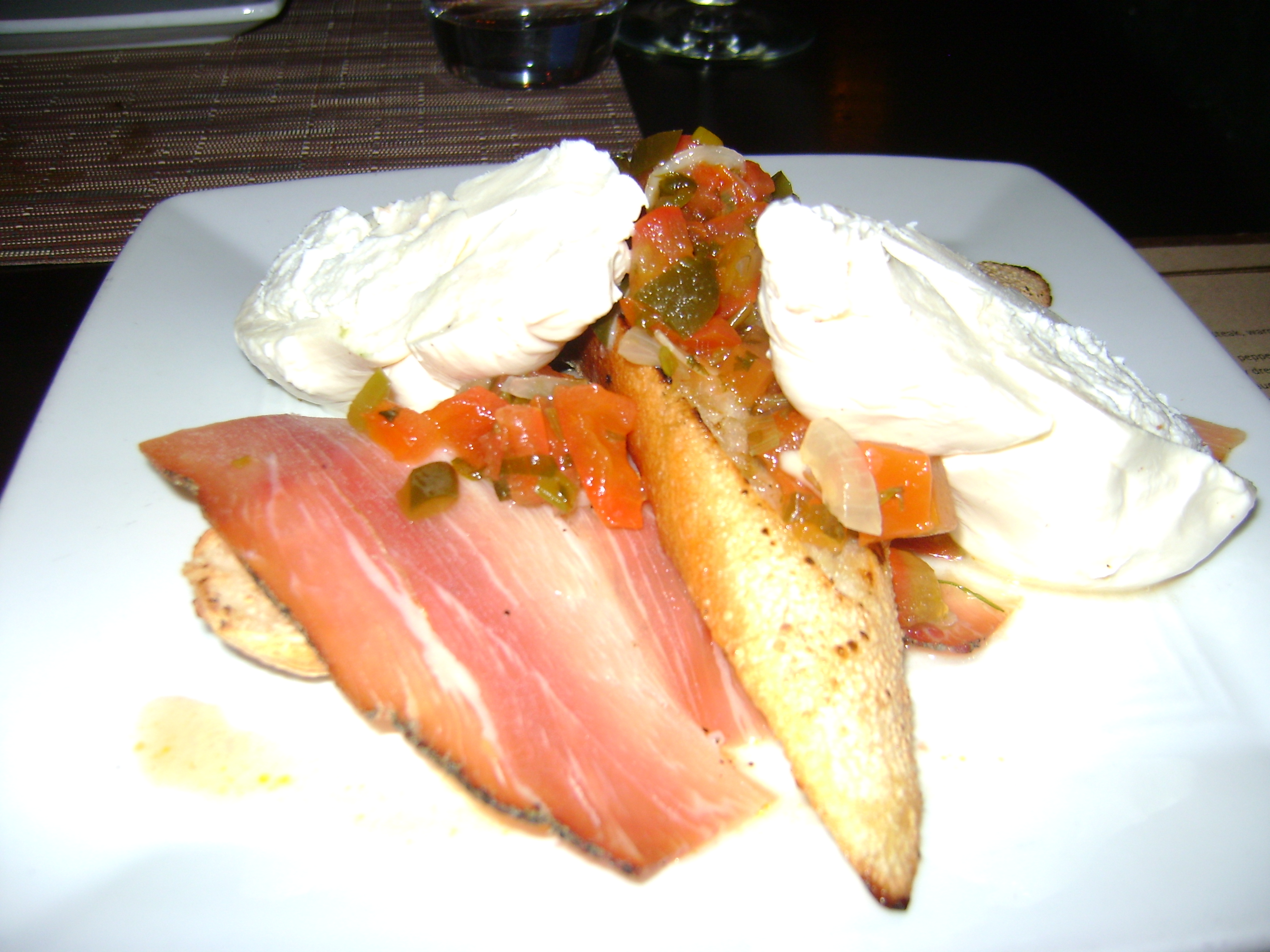 In lieu of a dinner we opted for wine and to share several appetizers. This was an opportunity to get caught up with friends. All told we shared a bottle of Cote du Rhone ($34) and four appetizers.
