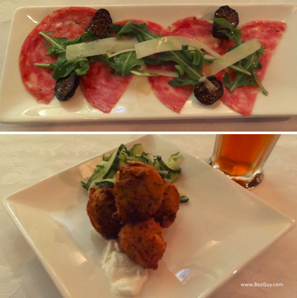 I couldn’t decide which appetizer to order so I opted to try both (I told myself this is for research purposes). The Soppresatta for $6 was a steal. It was so delicious I’d come back for this as a snack regularly if I lived closer. I rolled up each slice of dried salami with the thinly sliced Parmesan cheese, drizzled with honey, and chewy, sweet figs. Combined it tasted like a slice of heaven and I greedily ate every last bite. The second option, Chick Pea Fritters – also $6 – proved to be satisfying, but I couldn’t stop obsessing over my first plate and really only ate the fritters because they accompanied my ale so nicely.