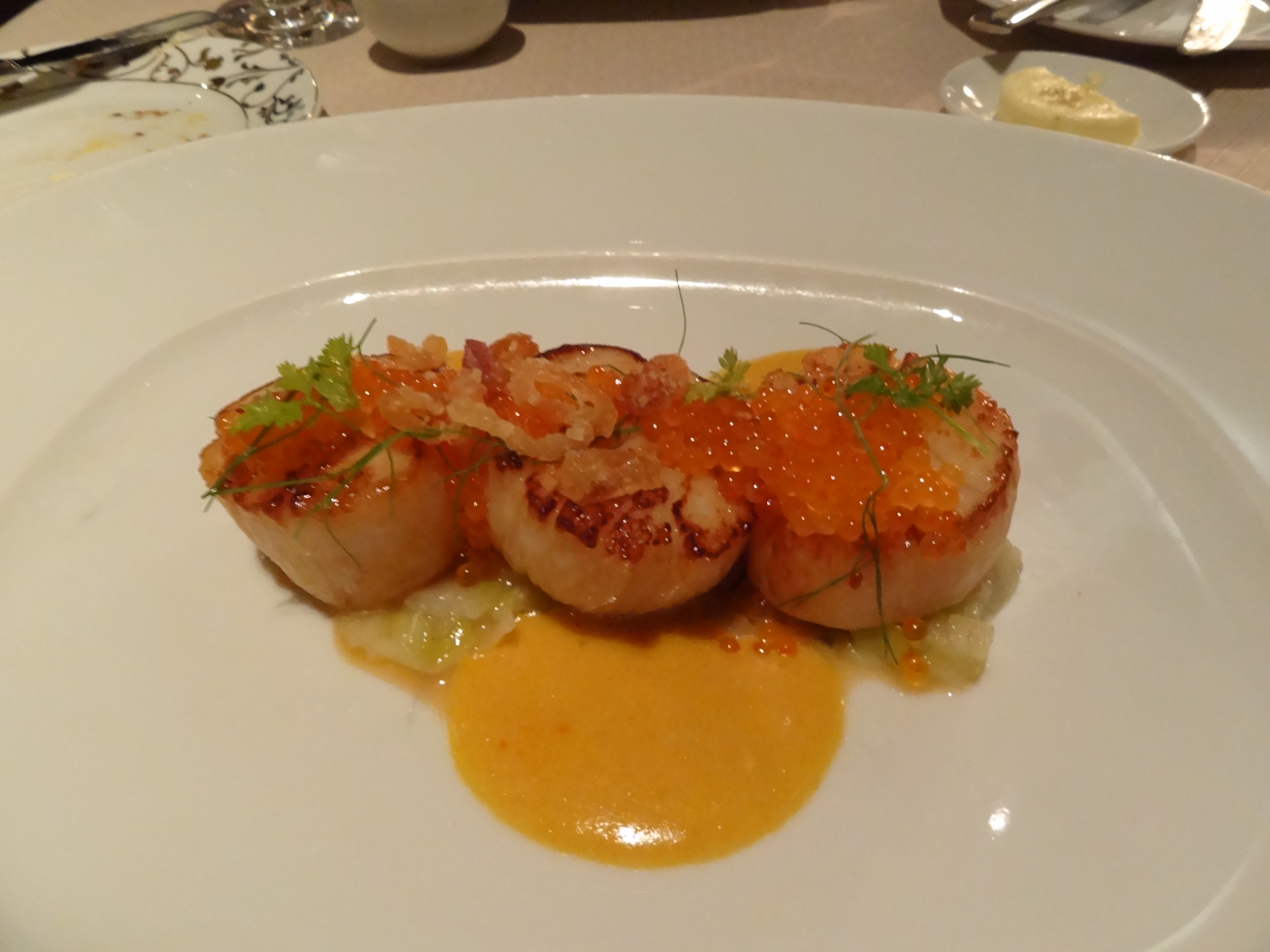 Although service was generally superb, there was an obvious miscommunication, because it was nearly a half hour between when we finished our second plate and received our third. This did not bother me nor detract from our dinner since we had planned a leisurely meal, but it did strike me as an odd issue for a restaurant, which clearly encourages the four course meal. The third plate proved worth the wait, and I thoroughly enjoyed the Capesante, sea scallops, fennel, leeks, uova di trota, and shellfish sabayon.