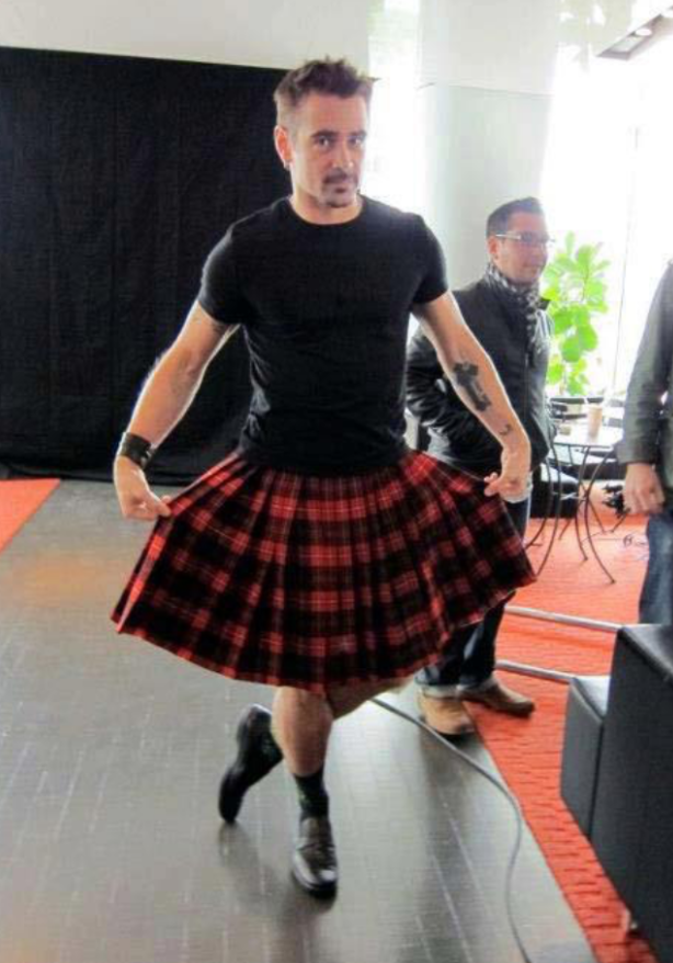 Colin Farrell shows us all how to curtsy while wearing a kilt.