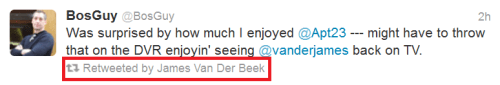 Earlier this week James Van Der Beek gave me a shout out on Twitter by retweeting me to his more than 137,000 followers. I thought it was pretty cool and didn’t mind the attention from such a handsome guy. Yeah, I suppose I’m a bit shallow like that.