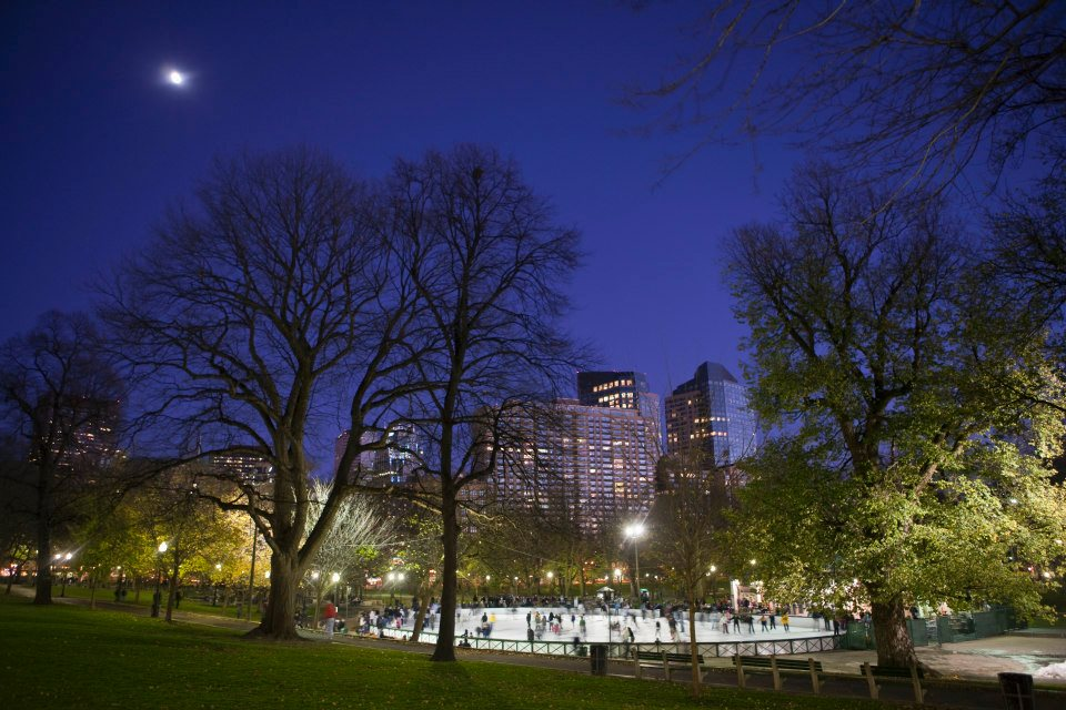 Boston Common Frog Pond located in the heart of the Boston Common and considered one of the best outdoor, public skating rinks in America, this is an obvious choice. The rink is open til 9PM on weekdays (except for Monday) and 10PM on weekends.