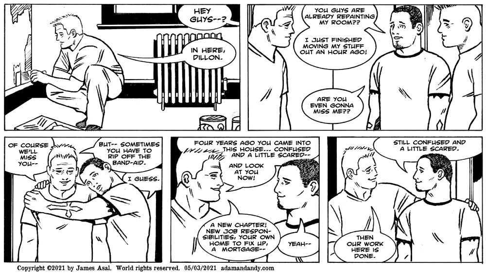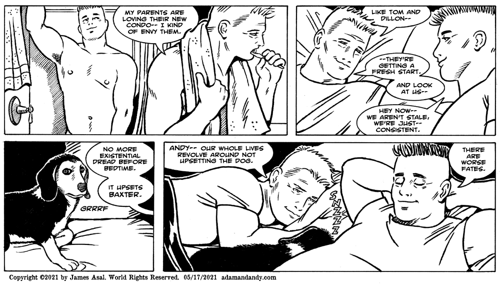 ADAM & ANDY is set in the fictional New England town of Woodfield, CT. You can learn more about Adam and Andy and purchase a copy of “the definitive collection of Adam and Andy” by visiting, adamandandy.com.