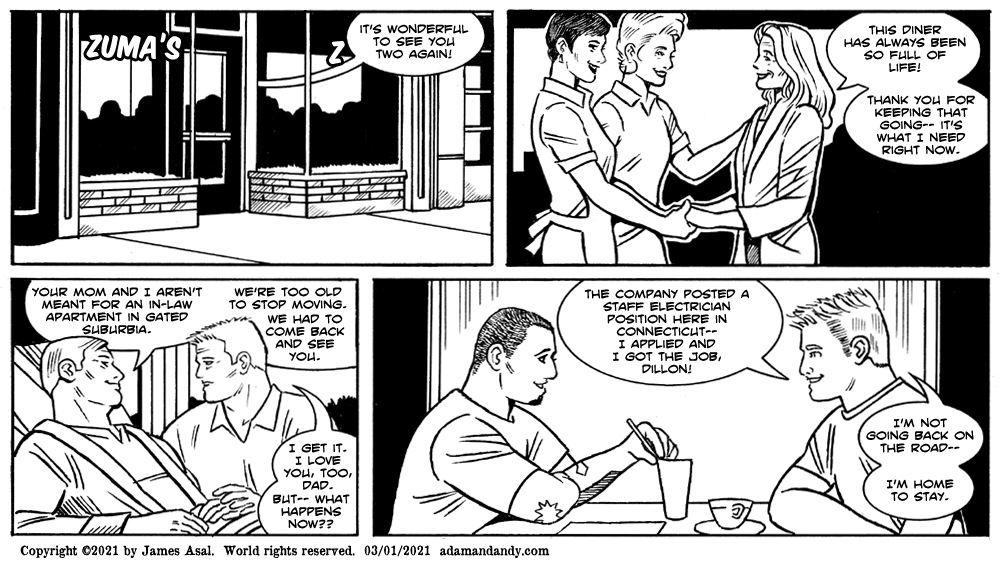 ADAM & ANDY is set in the fictional New England town of Woodfield, CT. You can learn more about Adam and Andy and purchase a copy of “the definitive collection of Adam and Andy” by visiting, adamandandy.com.