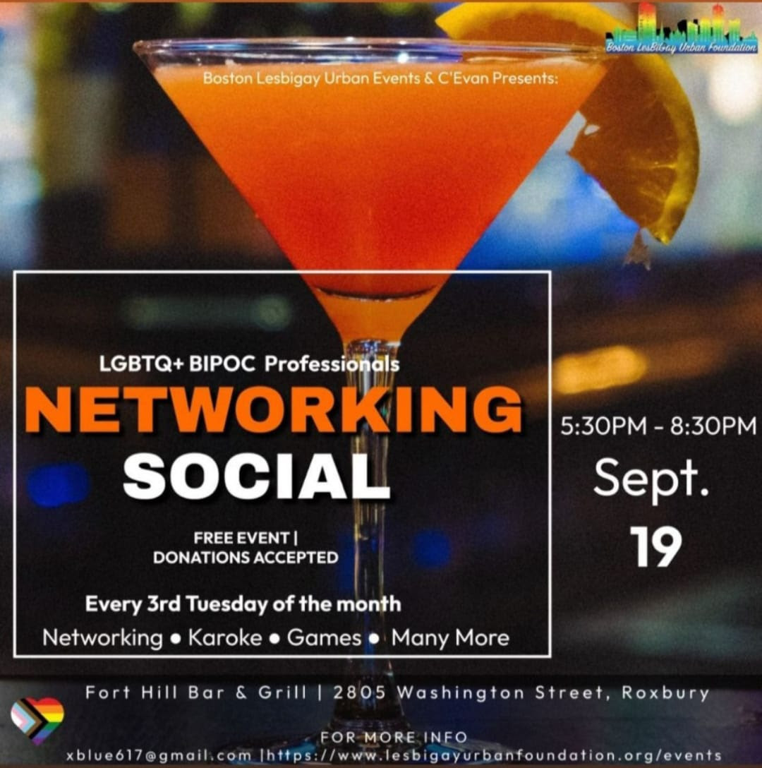 Later today the LesBiGay Urban Foundation will host a professional networking social at Fort Hill Bar & Grill for LGBTQ+ / BIPOC members of the community. A $5 donation is requested to help fund the group’s annual Urban / Black Pride Weekend hosted each summer.