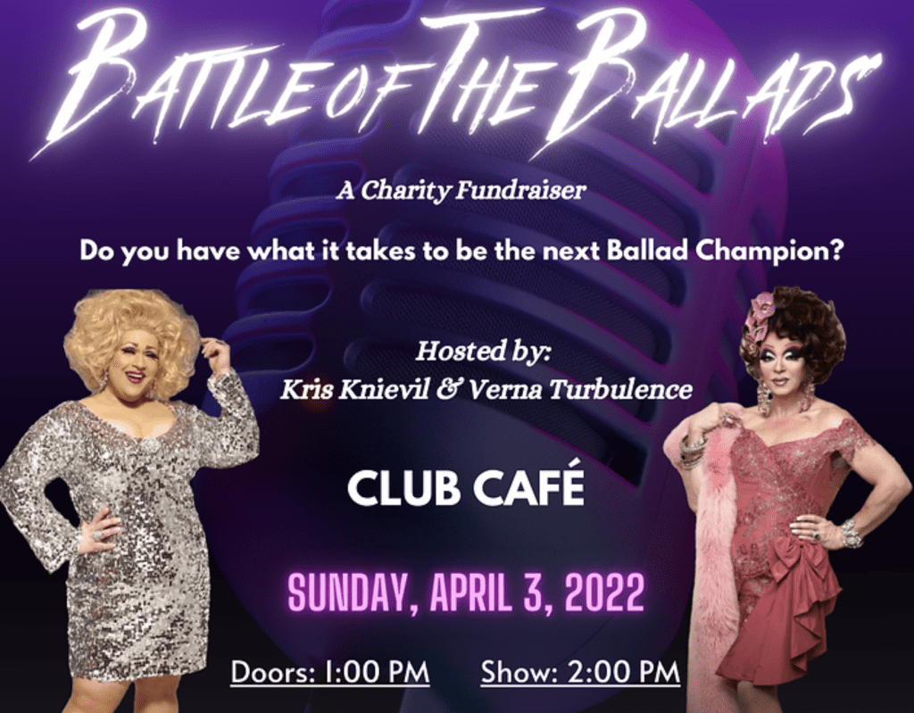 SUNDAY: Battle of the Ballads w/ hosts Kris Knievil & Verna Turbulence at Club Cafe @2PM