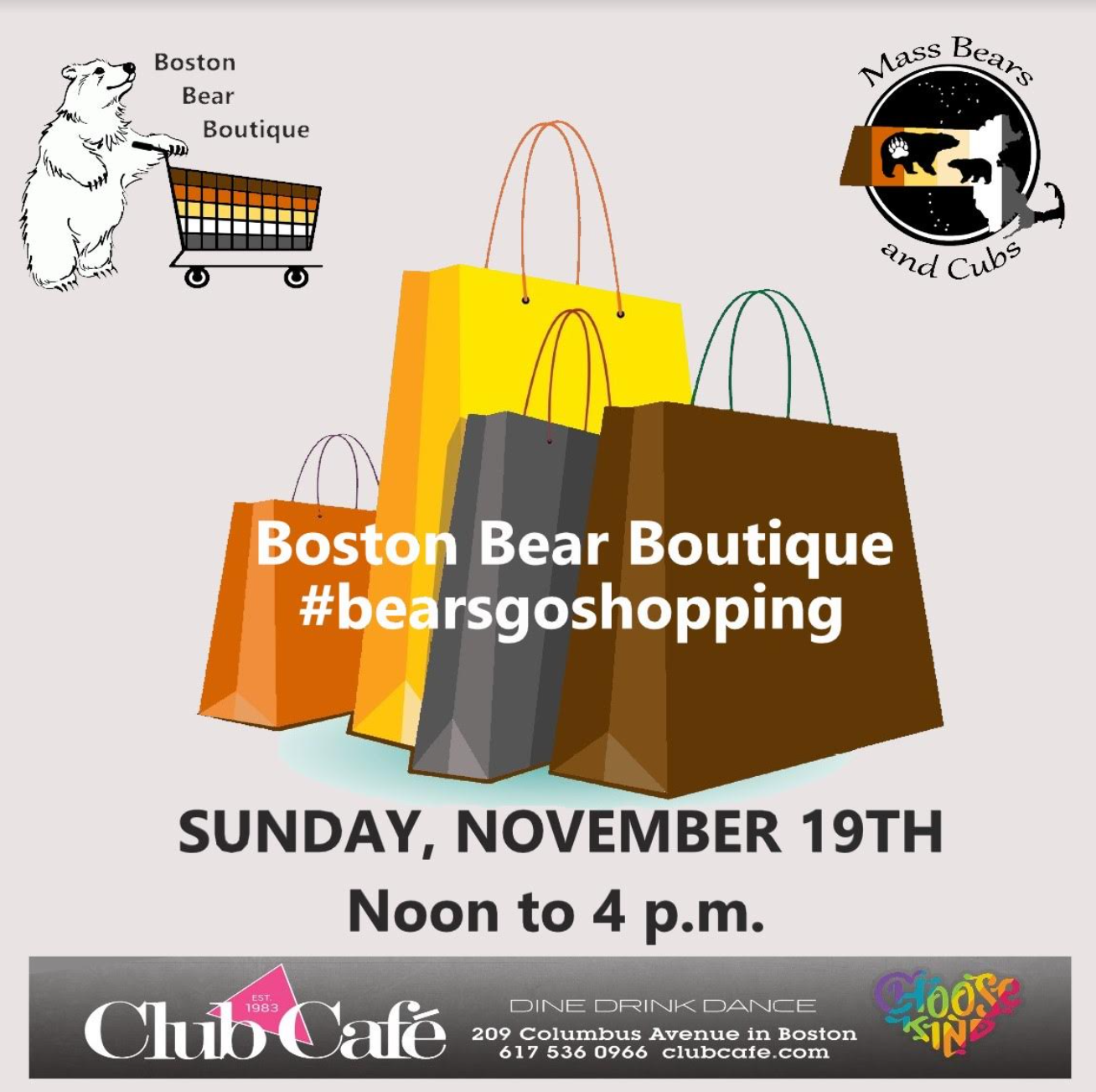 Start your day brunching with friends at Club Cafe. Following that you can do some early holiday browsing and shopping. The group will host its first “Boston Bear Boutique” from 12PM to 4PM.
