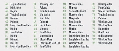 In February Food & Wine shared this interesting graphic of the most popular cocktail in each state. The information was compiled by Versus Reviews, a consumer goods research organization, that released this visual guide after reviewing data from Google over the last 12 months to determine which were the most searched for cocktails in each state.
