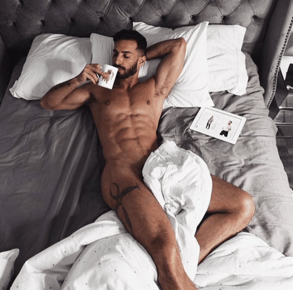 Tagged BosGuy, Boston Guy, coffee, gorgeous man, handsome, hunk, naked, naked in bed