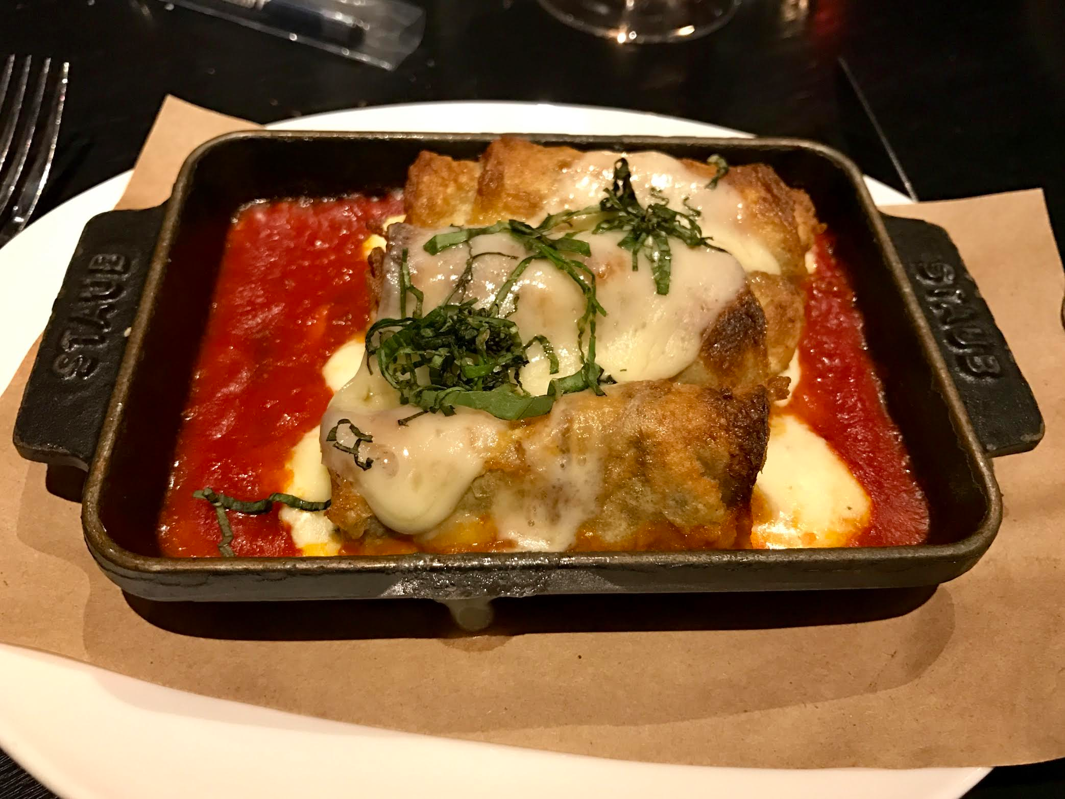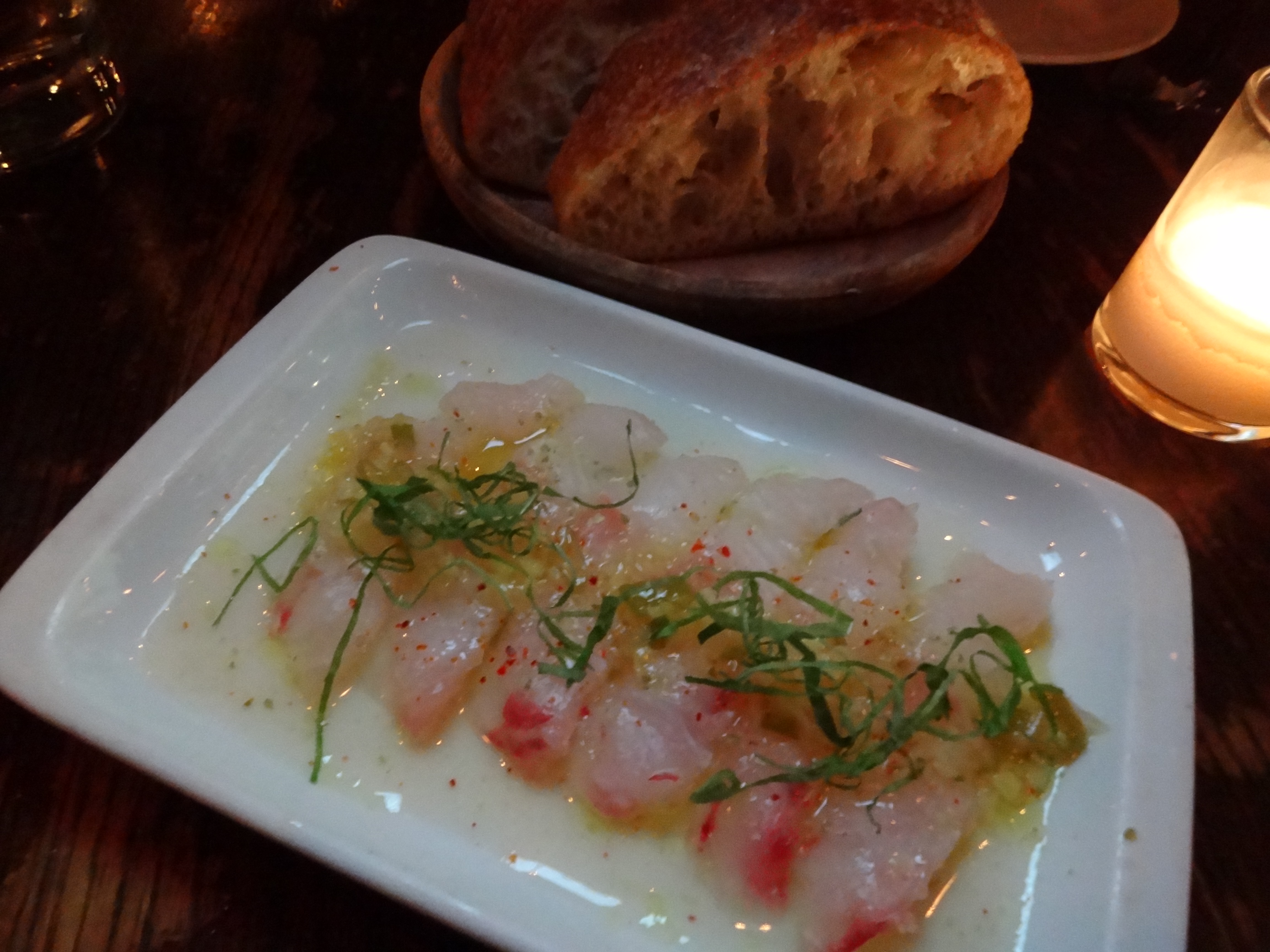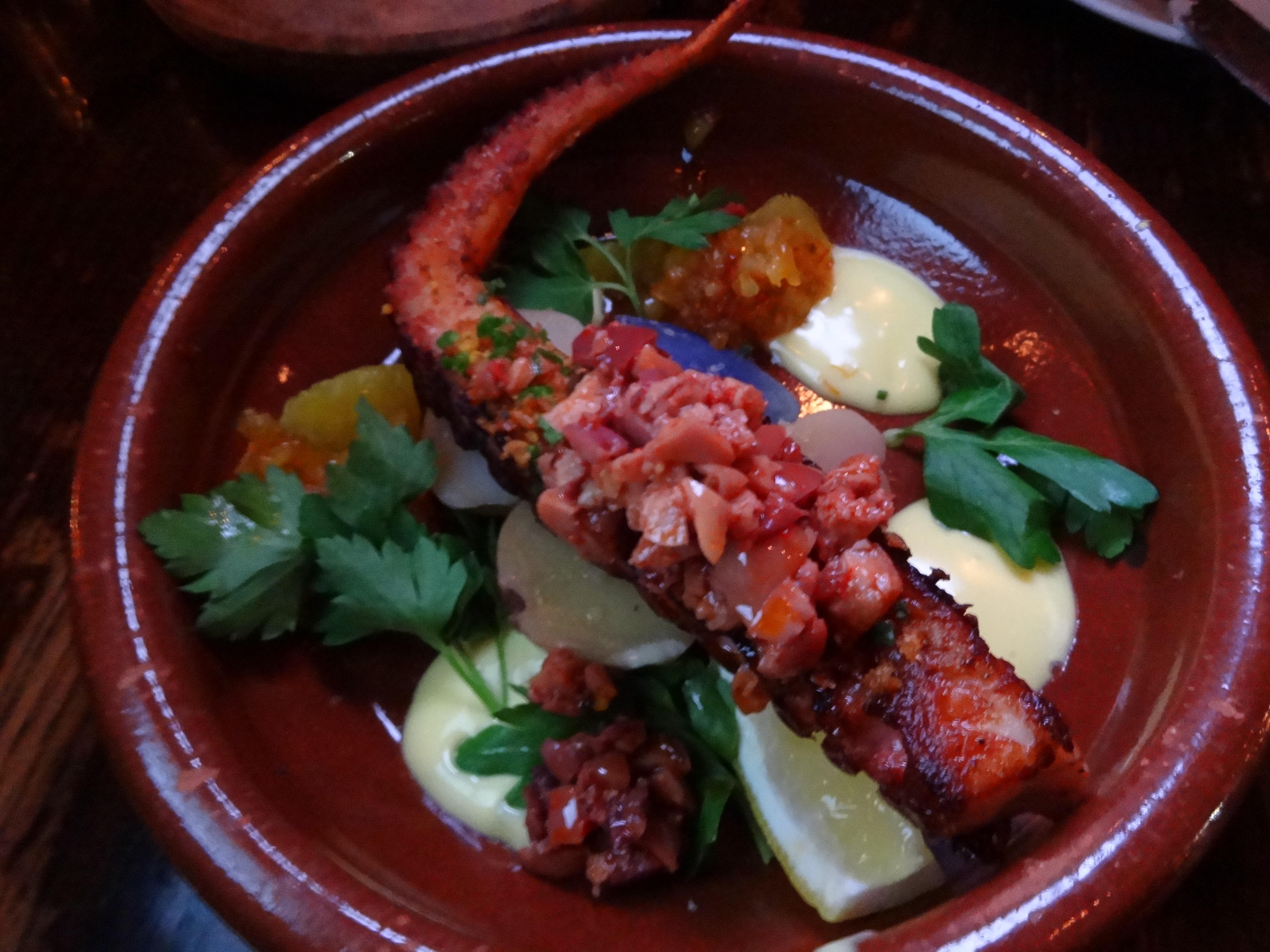 Our sever was vigilant about refilling our drinks, which if you are a beer drinker Lulu’s has a lot of options (about 50 is what I counted) but note they don’t have a full liquor license, rather they have a cordials liquor license. This article in the Boston Metro explains what that means. That being said it didn’t prevent Evan from enjoying his Manhattan and me from having scoffing down two lagers.